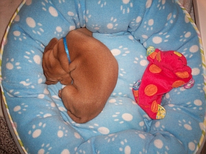 Now just three of us fit comfortably at 12 Days old! |  |  Me and Blue Boy are the same weight at 12 Days old! Love, Purple Girl |