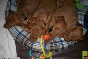 We had a busy days today - we started to walk! It is fun but made us sooooo tired! This is our puppy pile! |  |  Yep! A really busy day of walking! |