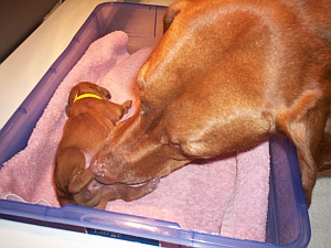 Purple Girl and her visitors! |  |  Puppies at 18 days old... so sweet! |