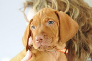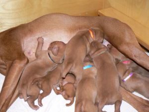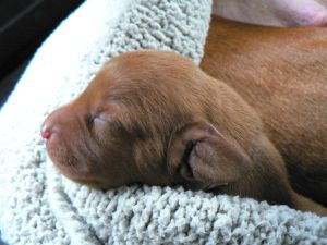 Little Yellow Girl gaining great weight! She is 12 ounces at 10 days old. |  |  We are on our way to the vet to get our dew claws removed and our tails docked 1/3 - ouch! Mommie is making sure that David did not miss anyone! |